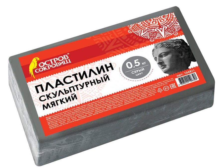 В корзину Купить в 1 клик Пластилин скульптурный "BR-74308" серый, 0,5кг, мягкий