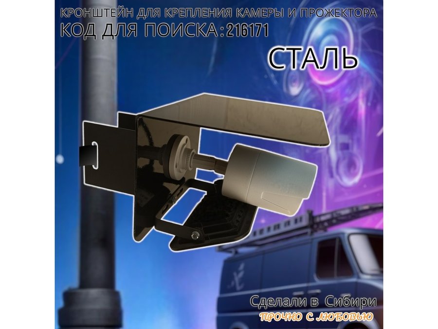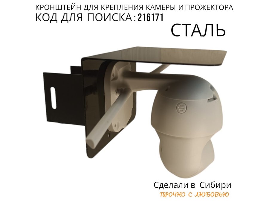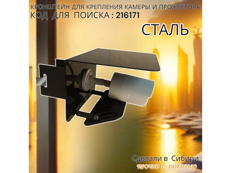 Кронштейн для камеры и прожектора на столб с козырьком "IPAHD-216171" черный,под СИП-ленту или хомут