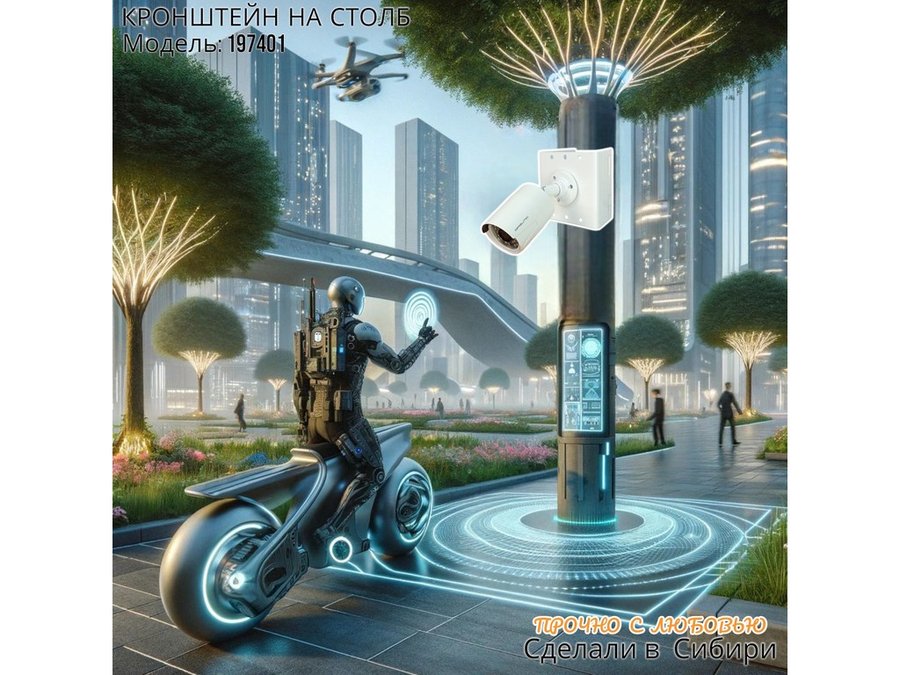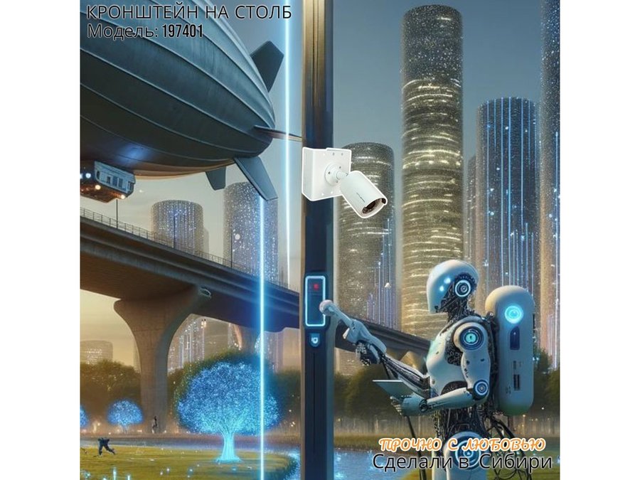 • Кронштейн для одной камеры и прожектора, крепится при помощи СИП ленты монтажной на квадратный или круглый столб. Подходит для любых камер.