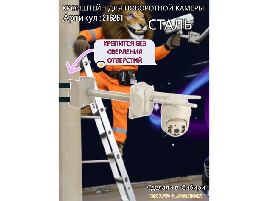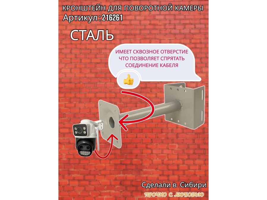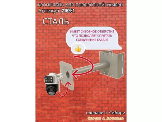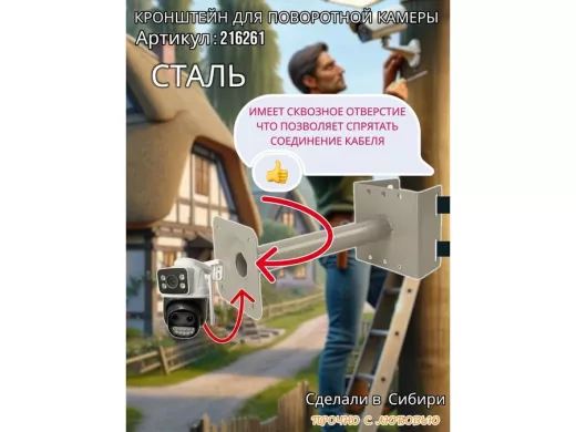 - Стальной кронштейн позволяет вынести камеру от столба на 25 см.