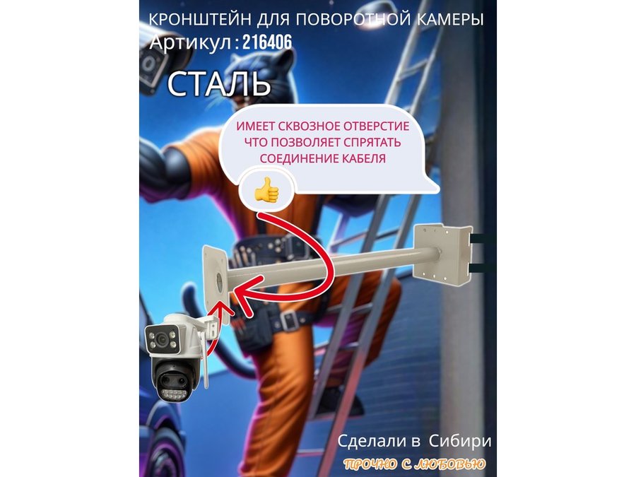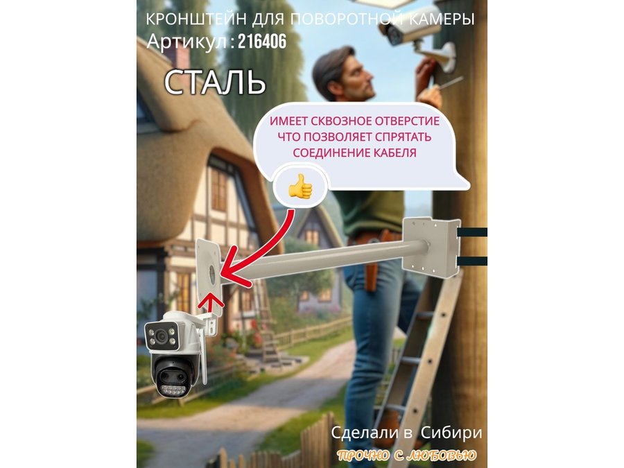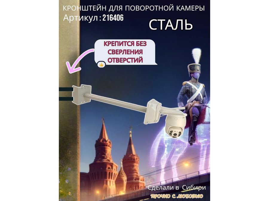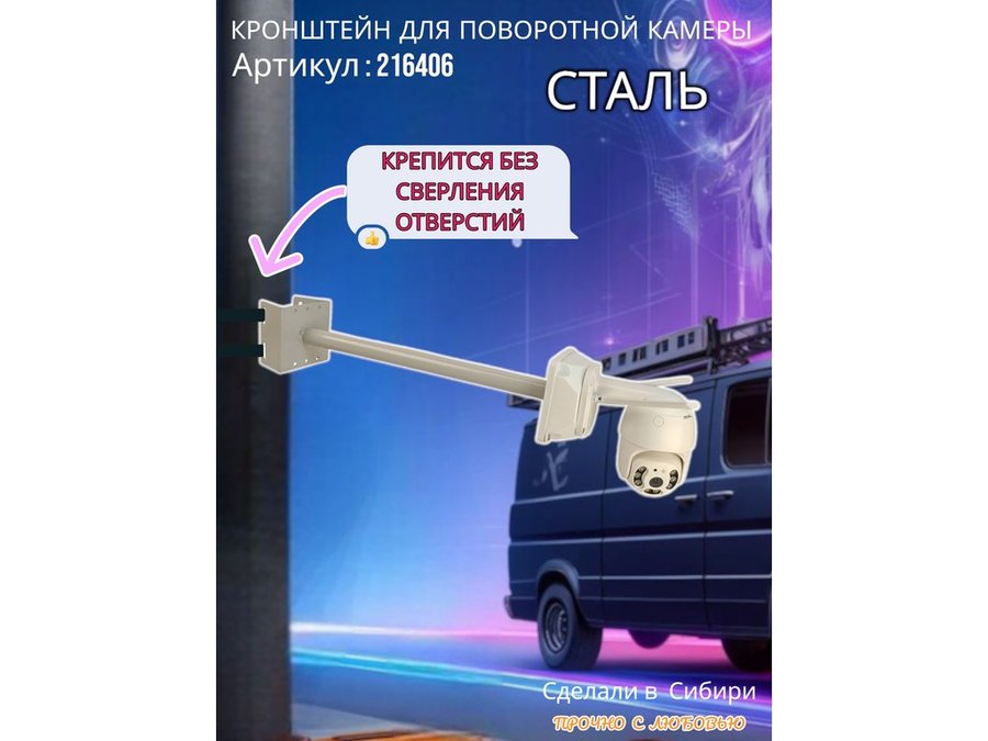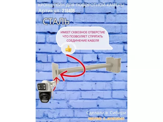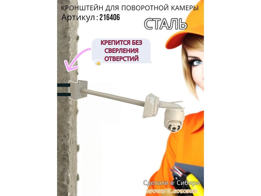 • Стальной кронштейн позволяет вынести камеру от столба на 50 см.