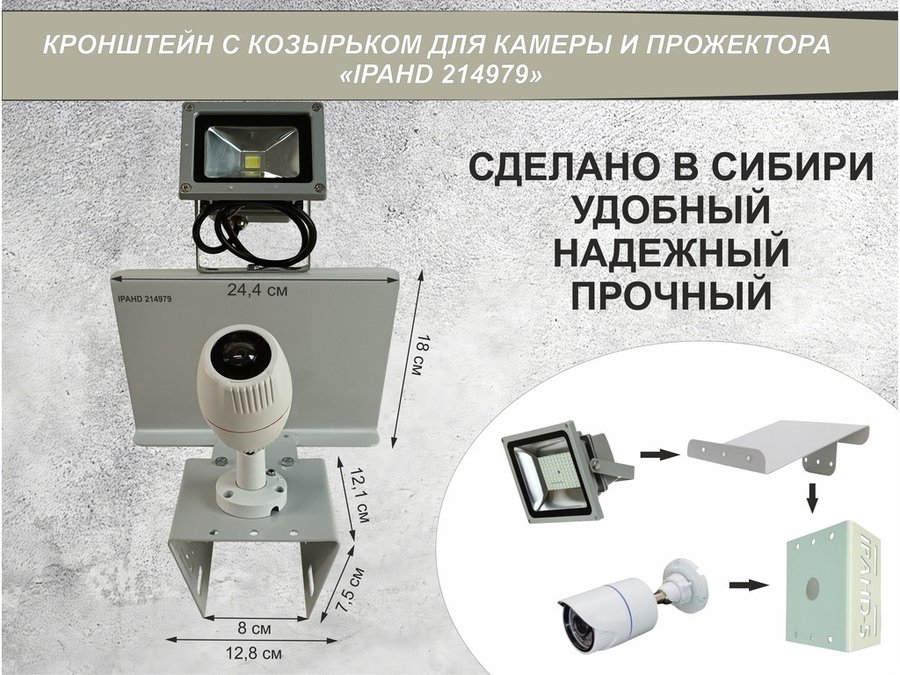 В корзину Купить в 1 клик Кронштейн для камеры и прожектора на столб с козырьком и желобом серый "IPAHD-5-214979"