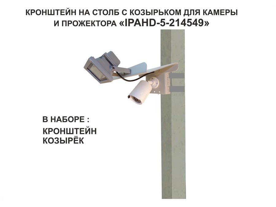 Кронштейн для камеры и прожектора на столб с козырьком и желобком серый "IPAHD-5-214549"