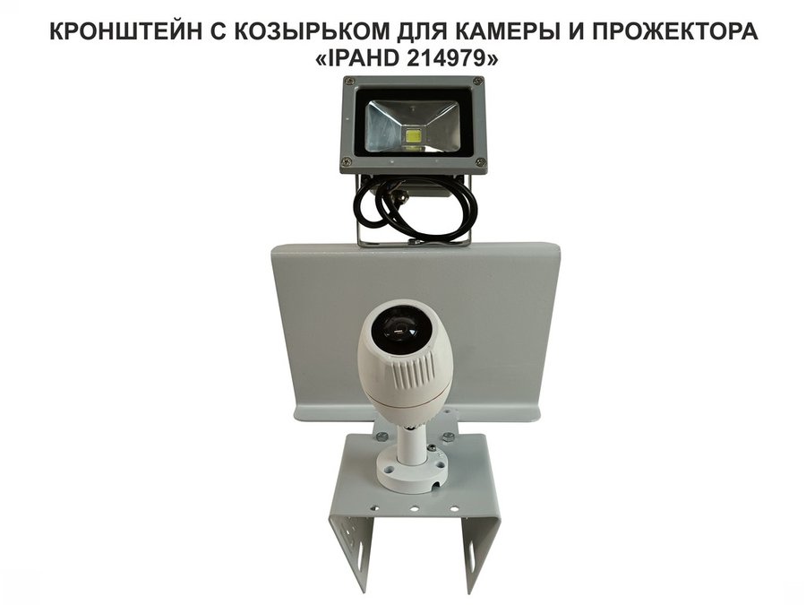 Кронштейн для камеры и прожектора на столб с козырьком и желобом серый "IPAHD-5-214979"