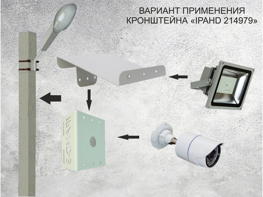 - Кронштейн позволяет быстро зафиксировать камеру и прожектор на столбе, не сверля его.