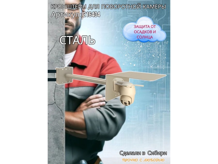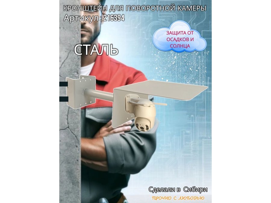 В корзину Купить в 1 клик Кронштейн на столб для поворотной камеры с козырьком и вылетом 25 см "HIWOLL-216394" серый, сталь