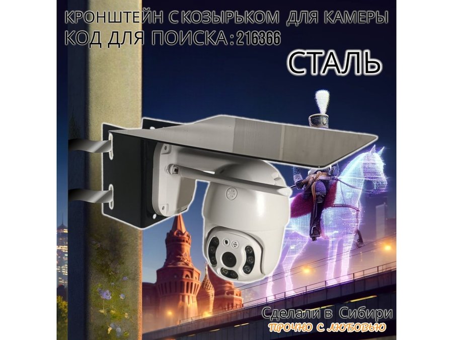 • Кронштейн для крепления поворотной камеры, крепится при помощи СИП ленты монтажной на квадратный или круглый столб.