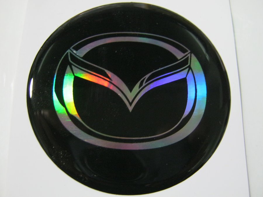 В корзину Купить в 1 клик наклейка (объемная) "На колпаки "Mazda" наружная голограф., (цвет черный), (комплект 4 шт), диам.6см