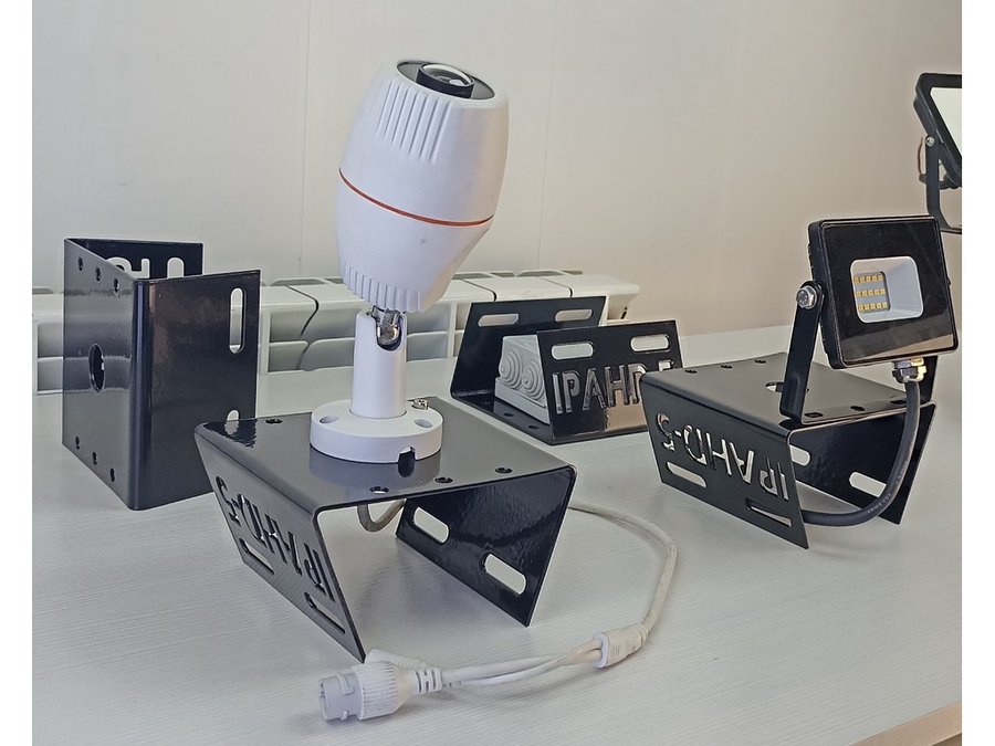 - Кронштейн позволяет быстро зафиксировать камеру и прожектор на столбе, не сверля его.