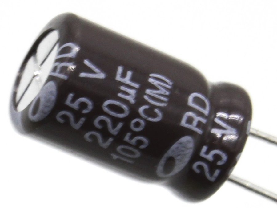 В корзину Купить в 1 клик Конденсатор электролитический 220mf x 25V (8x11,5) 105 RD, Samwha