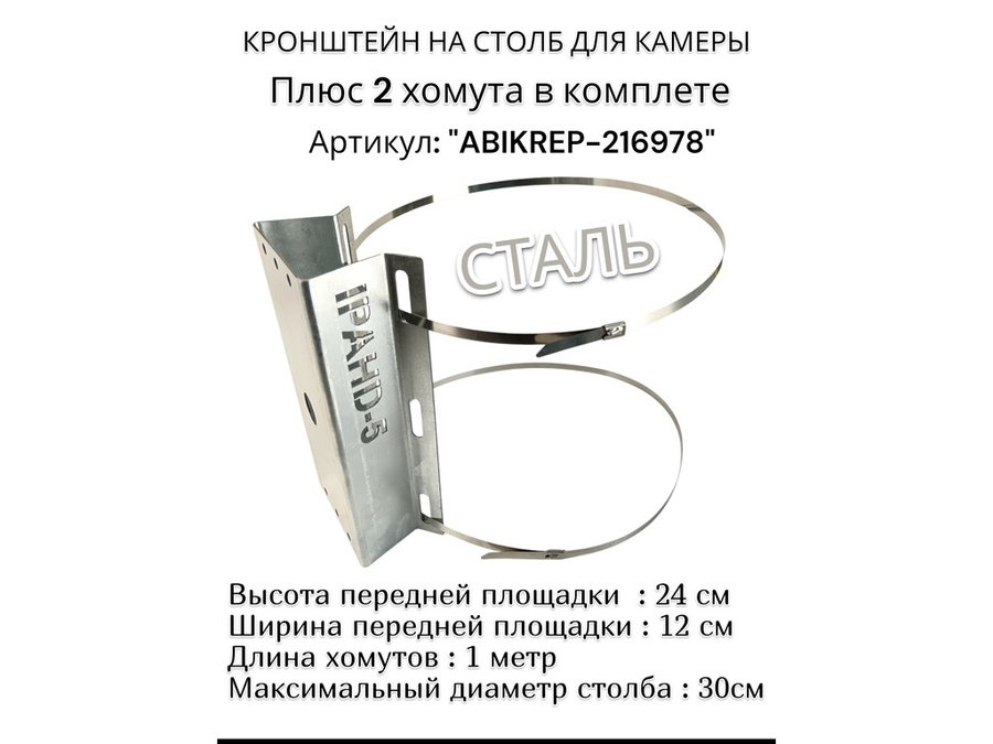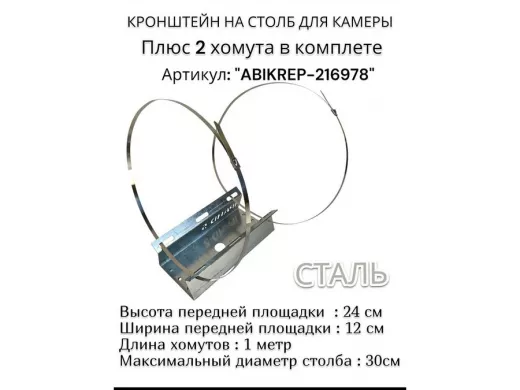 Кронштейн оцинкованный для камеры видеонаблюдения с двумя хомутами на столб "ABIKREP-216978" 24х12см