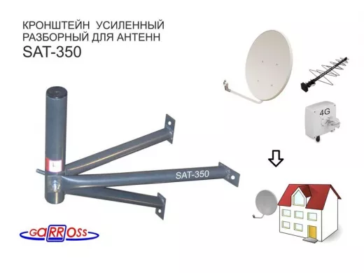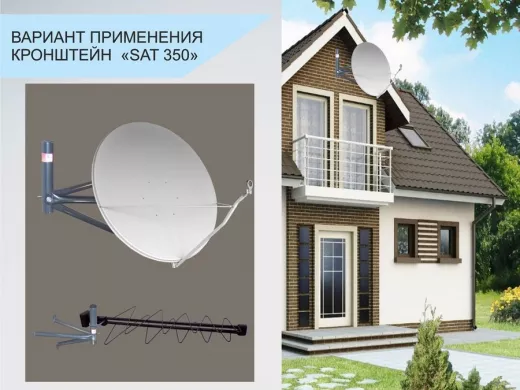 - "SAT-350" кронштейн антенный разборный предназначен для крепления антенн эфирных и спутниковых офсетных антенн к стенам зданий