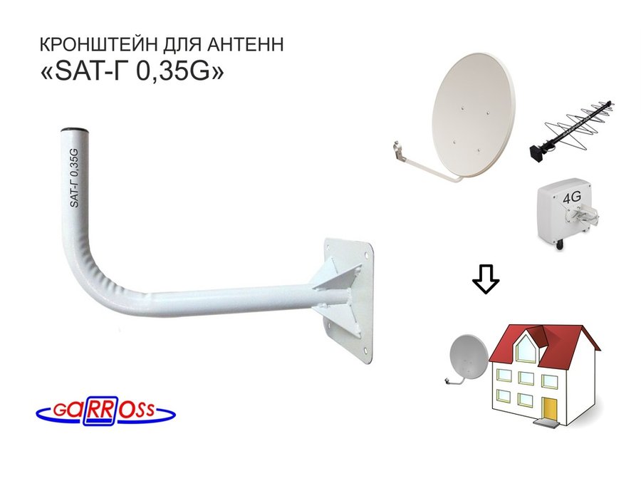 В корзину Купить в 1 клик Кронштейн антенный "SAT-Г 0,35G-18038" СЕРЫЙ для спутниковых и эфирных антенн; вылет 0,35м; 32мм