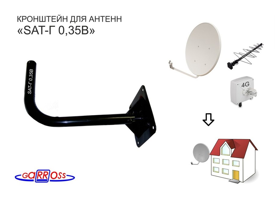 В корзину Купить в 1 клик Кронштейн антенный "SAT-Г 0,35B-9125" ЧЁРНЫЙ для спутниковых и эфирных антенн; вылет 0,35м; 32мм