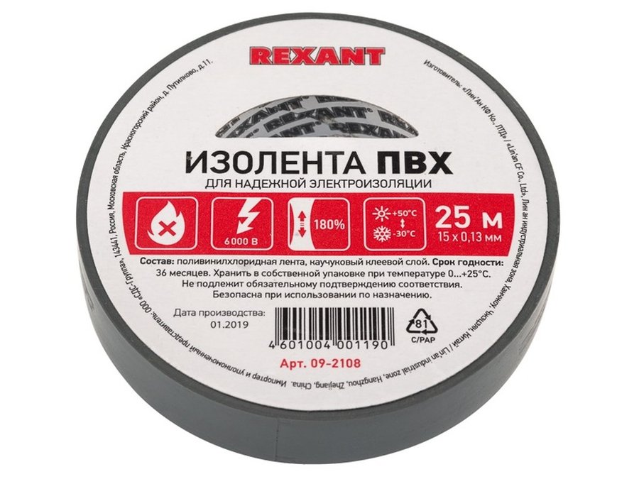 В корзину Купить в 1 клик Изолента 15мм х 25метров серая REXANT
