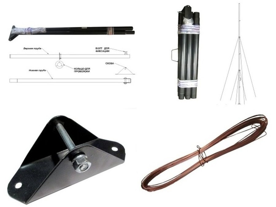- В комплекте мачты: три трубы диаметром 50мм, подпятник и проволочные растяжки