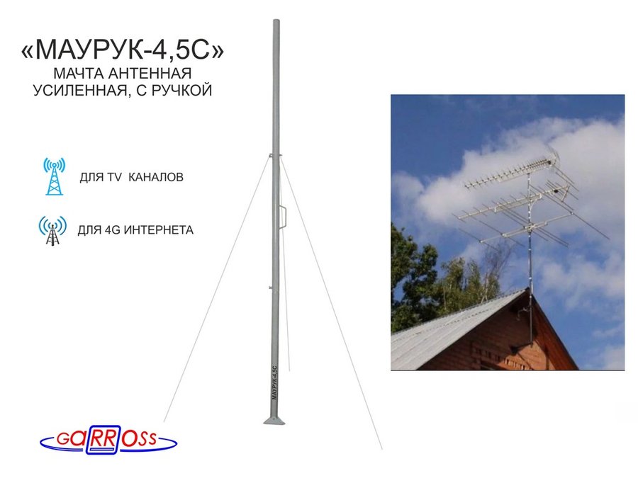 . Для антенн. Мачты на крышу или землю. "МАУРУК" усиленные с ручкой.