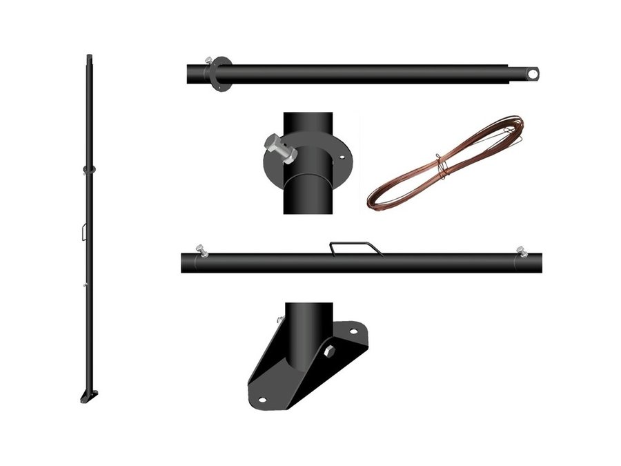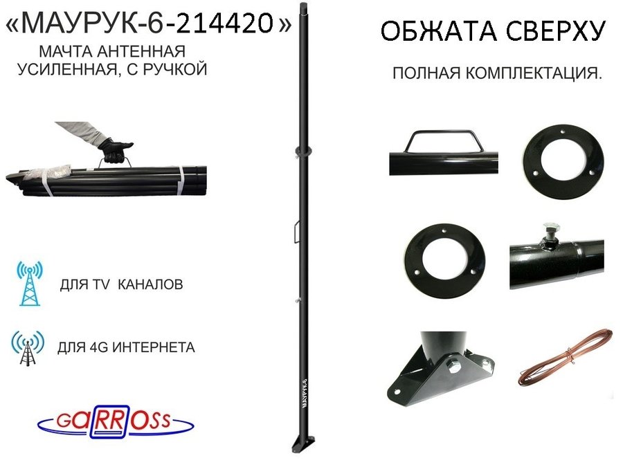 В корзину Купить в 1 клик Мачта "МАУРУК-6-14438" чёрная усиленная с РУЧКОЙ, растяжкам и подпятником, труба 51мм, 6м, 6 секций