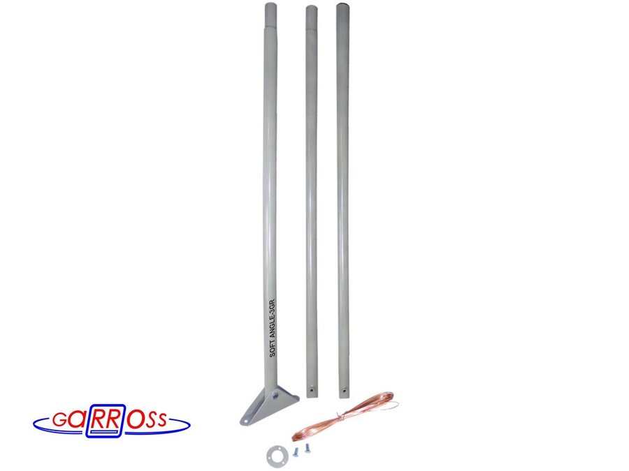 Мачта антенная 3 метра "SOFTANGLE-3GR-112079" серая с растяжками, подпятником, 3 секции, труба 32мм