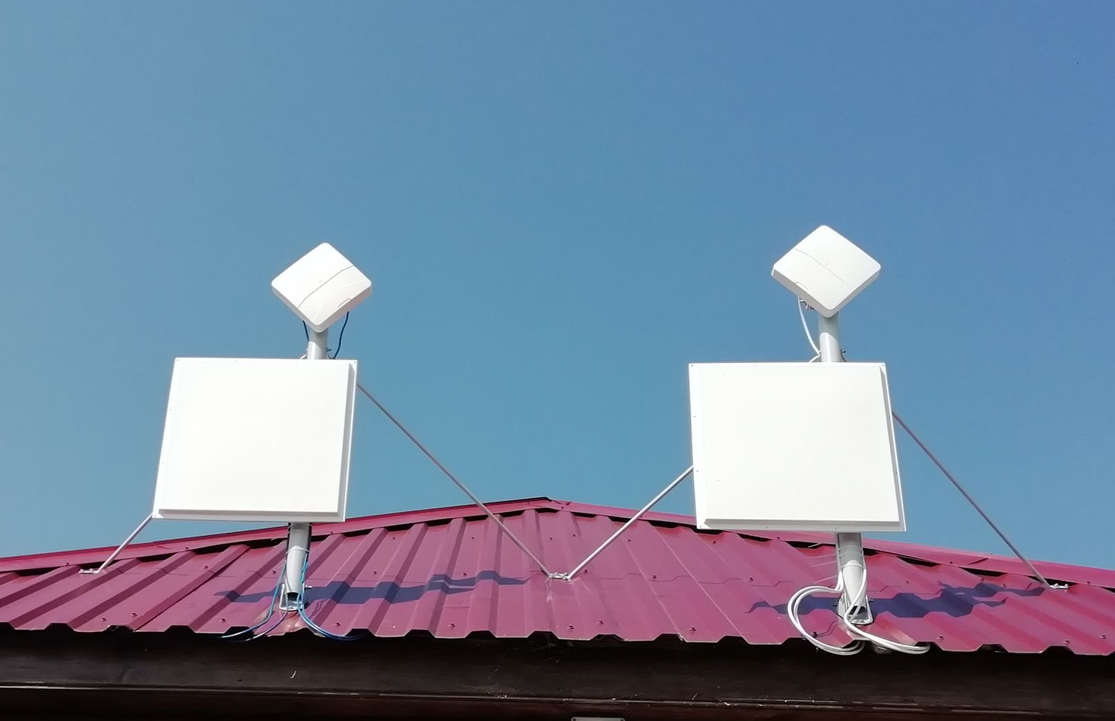 Пример монтажа на одной мачте телевизионной антенны и панельной антенны для беспроводного интернета 3G, 4G
