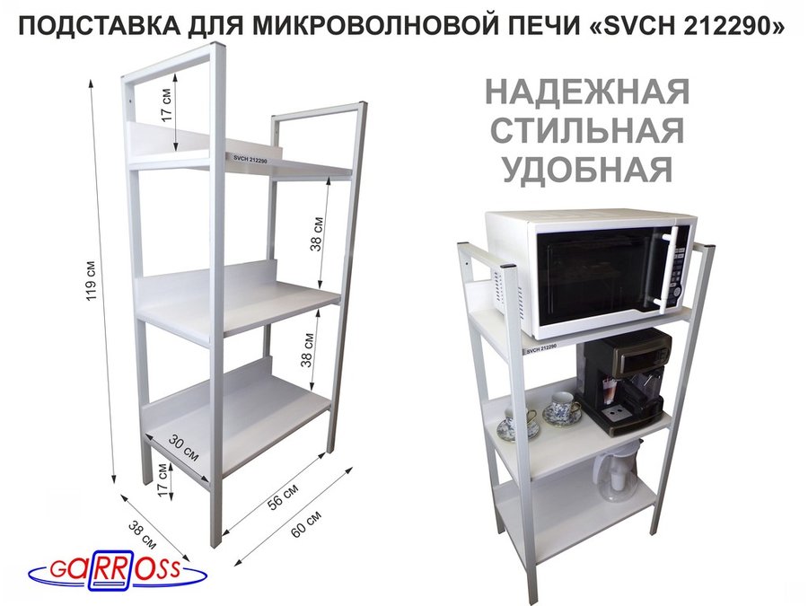В корзину Купить в 1 клик Подставка для микроволновой печи, высота 119см, серый "SVCH 212290" три 60х30см, сосна выбеленная