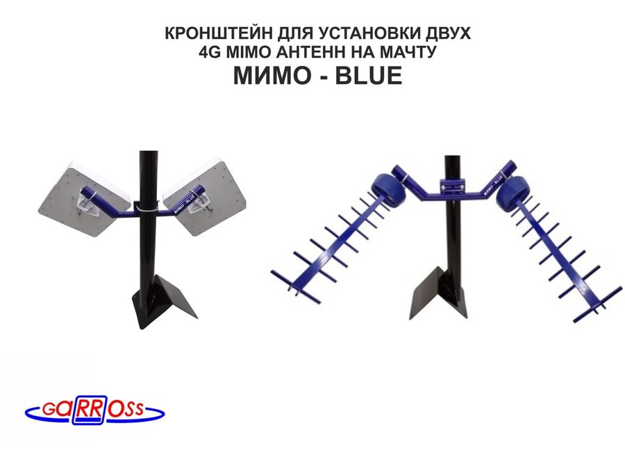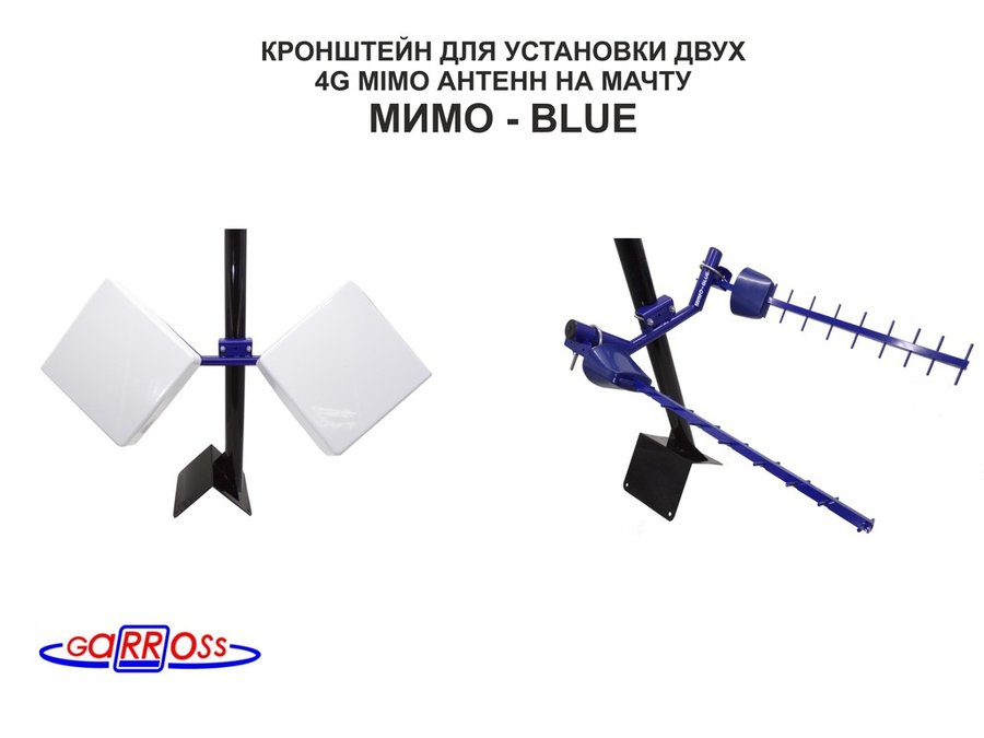 Кронштейны "МИМО" СИНИЙ - используется для установки телевизионных антенн, работающих вместе с цифровыми приставками DVB-T2 либо с телевизорам разнообразных моделей, антенн для беспроводного интернета 3G, 4G, WI-FI, антенн для радиостанций различных диапазонов.