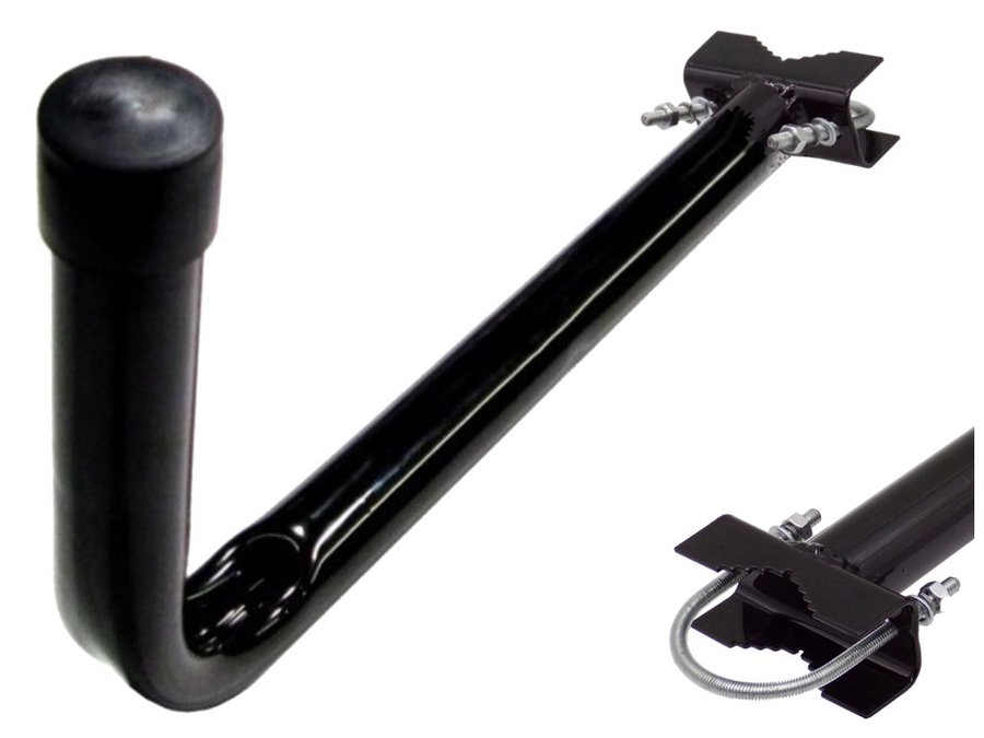 • Кронштейн надежно крепится на трубу при помощи хомута.