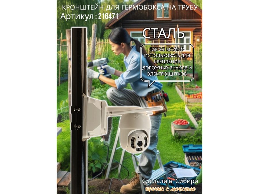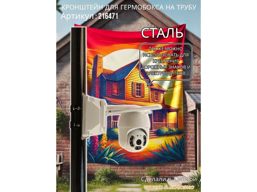 • Кронштейн позволяет быстро зафиксировать гермобокс с видеокамерой на трубу.