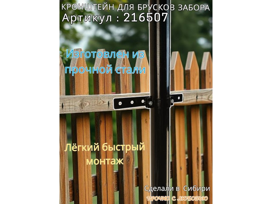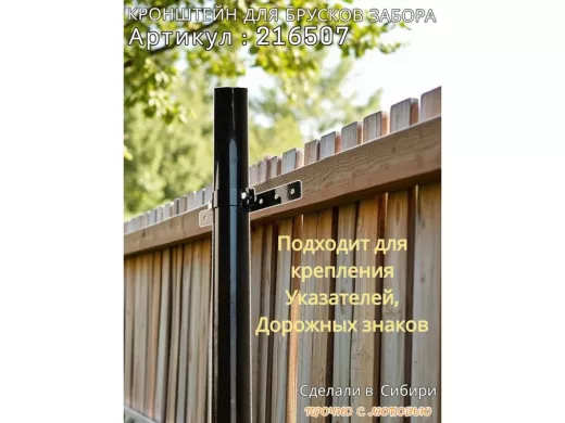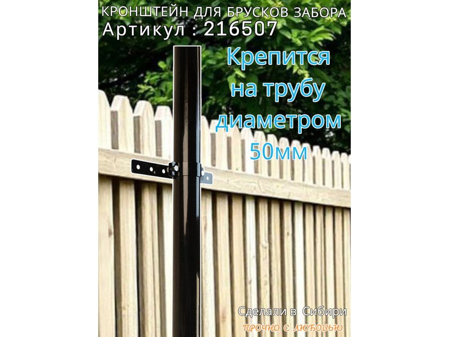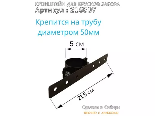 Кронштейн для крепления брусков забора на трубу диаметром 50мм "PODPORA-216507" сталь, цвет черный