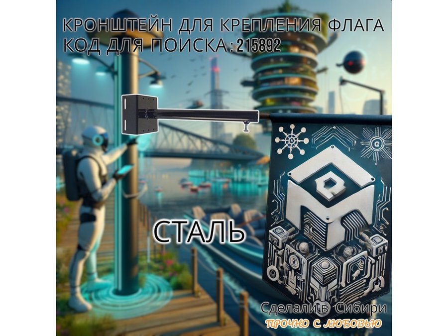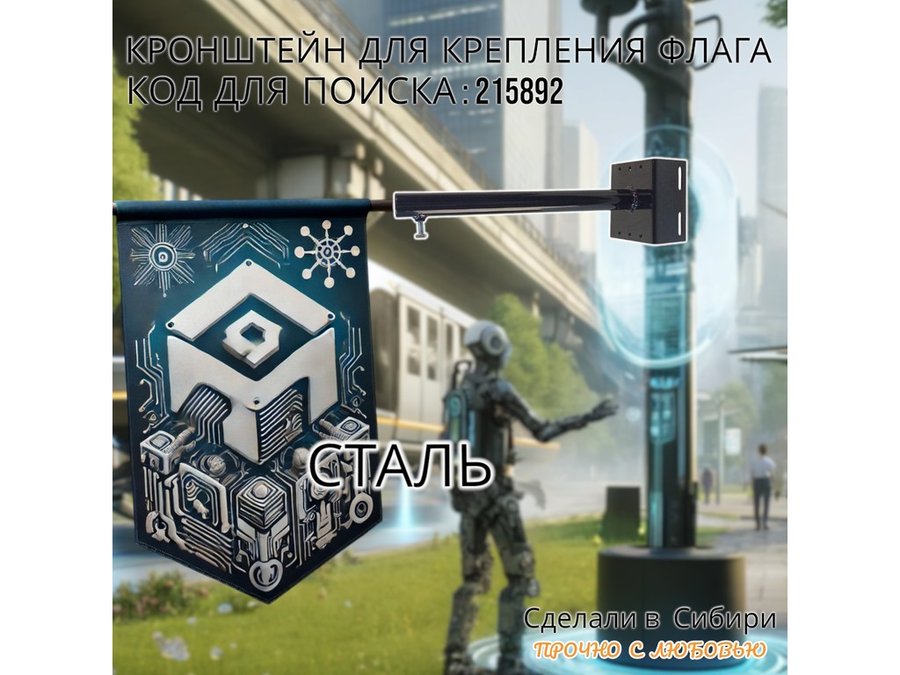 Кронштейн позволяет быстро и прочно зафиксировать флаг или вазон на столбе без его сверления.