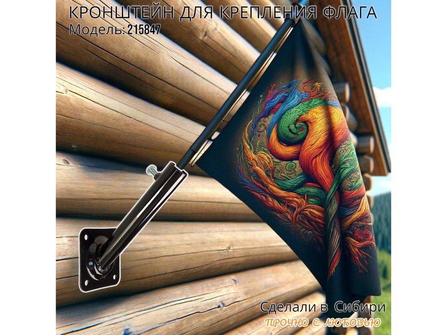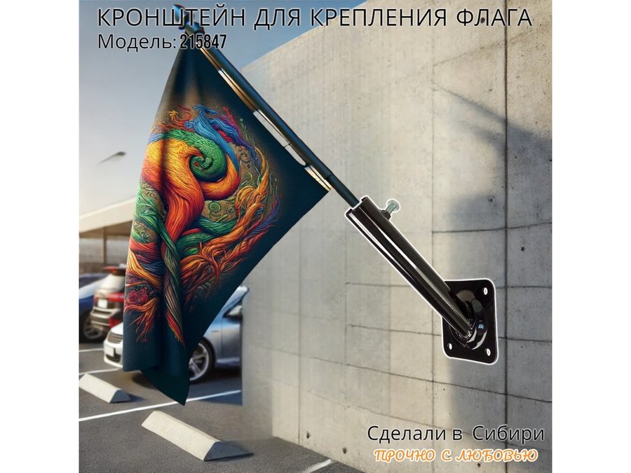 Кронштейн для крепления одного флага на стене угол 45 градусов "ФЛАГОКРЕП-215847" сталь, цвет черный