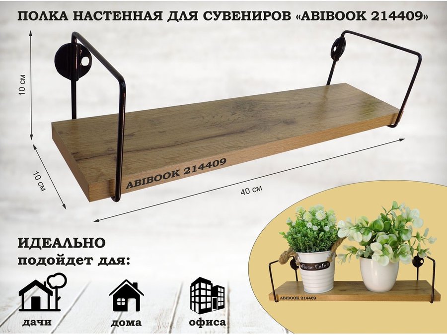 В корзину Купить в 1 клик Полка настенная для сувениров 10x 40 см дуб вотан ABIBOOK-214409