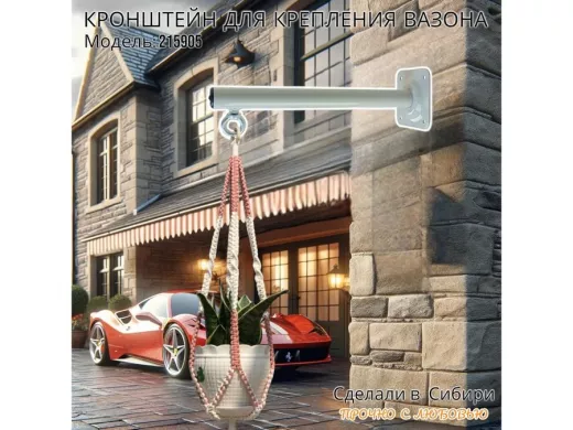 В корзину Купить в 1 клик Кронштейн для крепления кашпо, вазона на стене угол 90гр вылет 35см "ПРОСЕКИНО-215905" сталь, серый