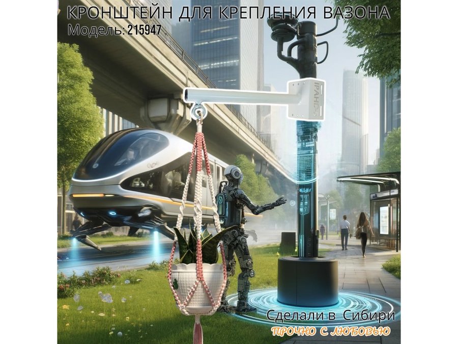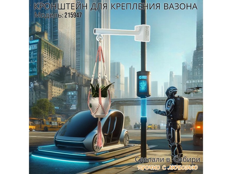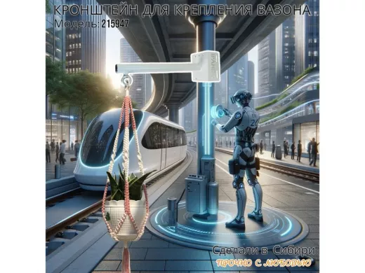 Кронштейн для крепления кашпо на столб угол 90 градусов "ПРОСЕКИНО-215947" вылет 35см, сталь, белый