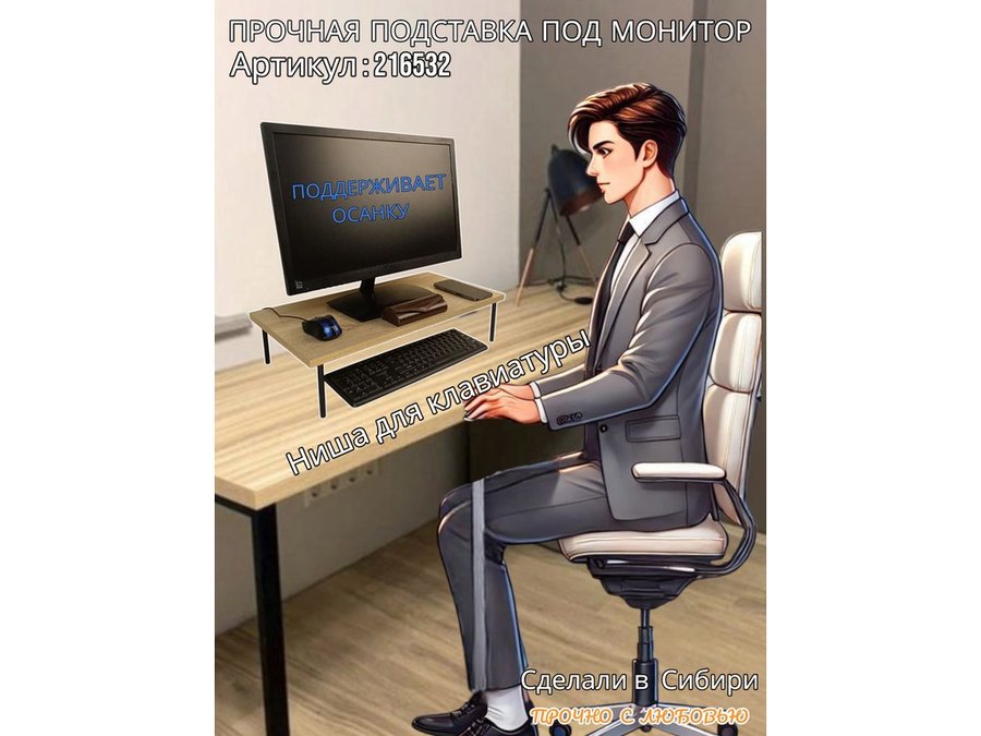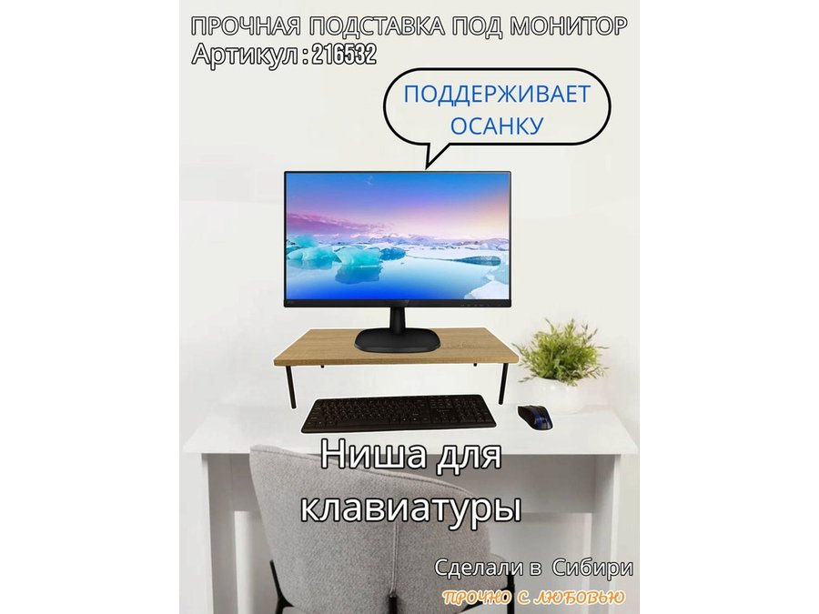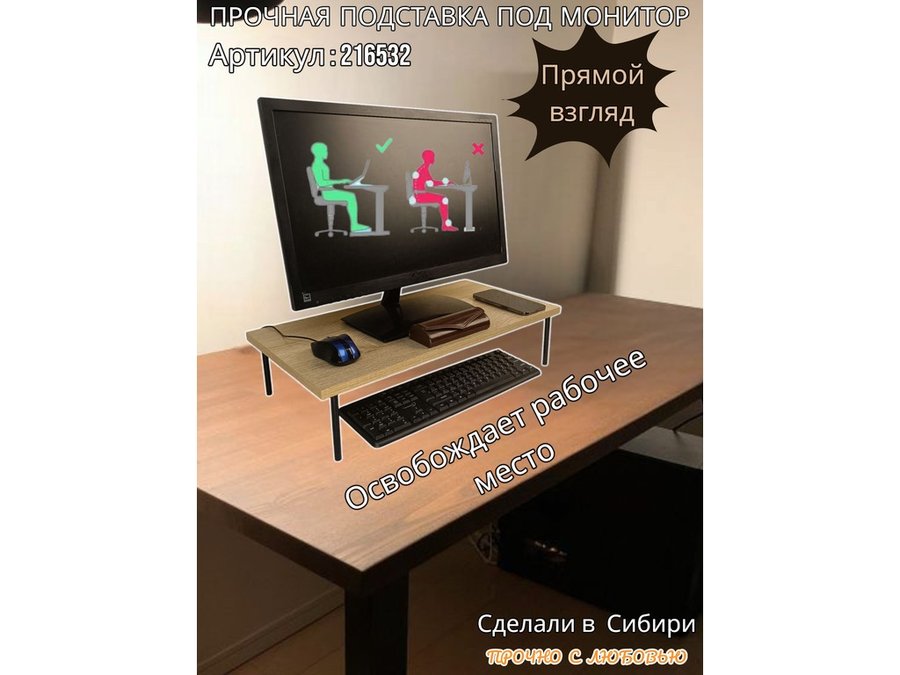 • Универсальная подставка для монитора имеет лаконичный и стильный дизайн, идеально подойдет для любого интерьера.