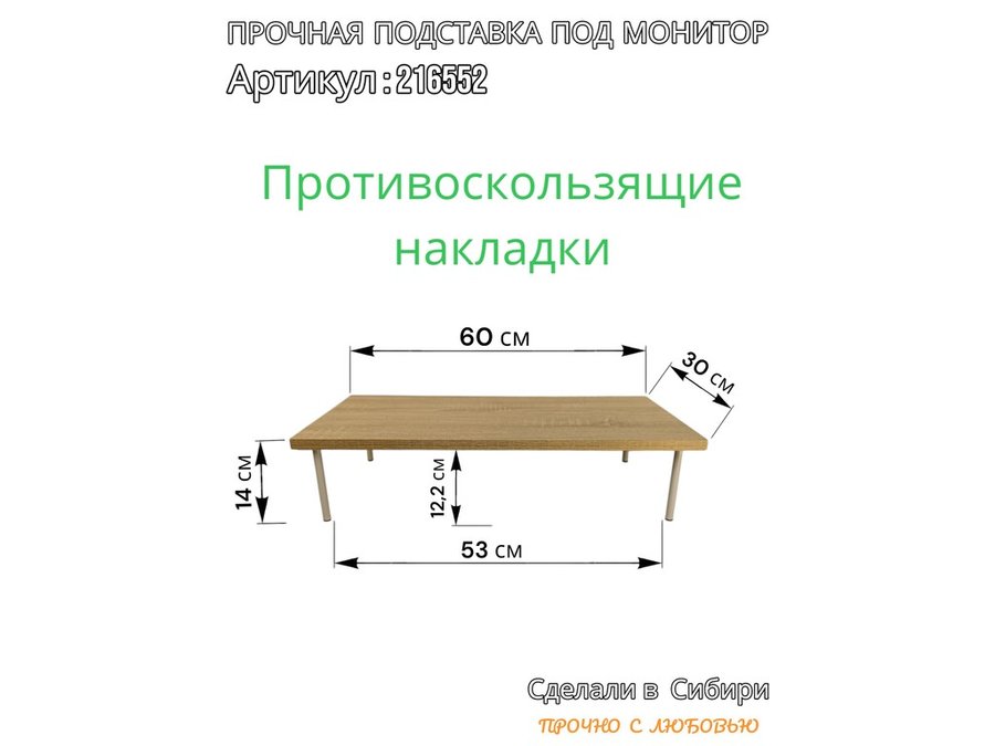 Подставка под монитор на стол 60х30см высота 14см "ABBIKUS-216552" дуб сонома, серые ножки