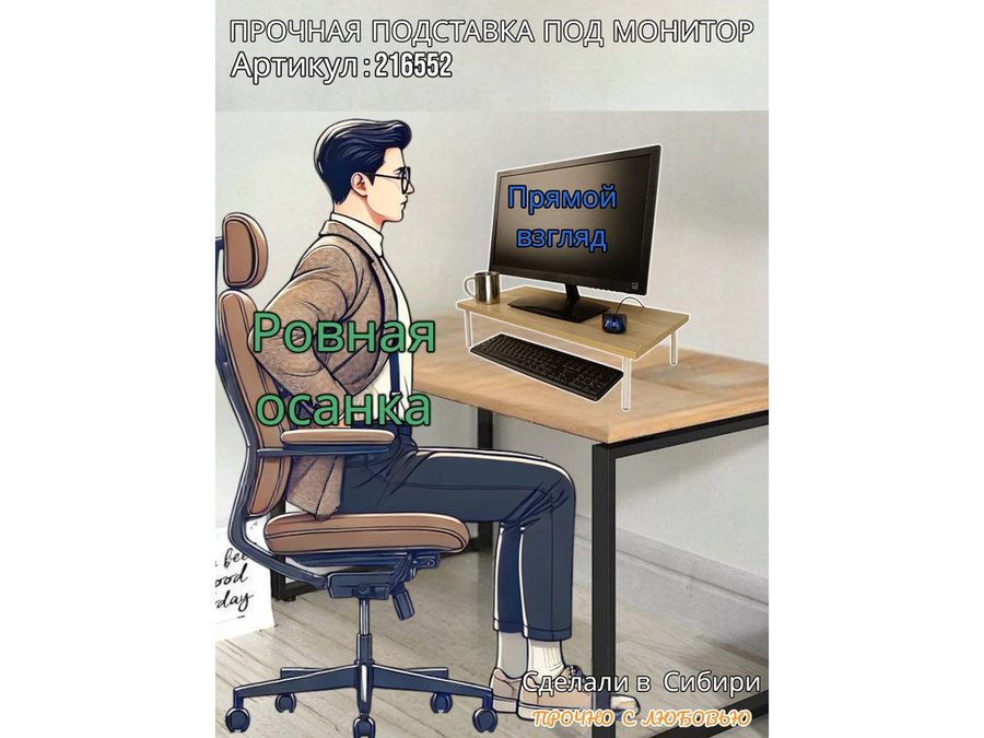 - Универсальная подставка для монитора имеет лаконичный и стильный дизайн, идеально подойдет для любого интерьера.