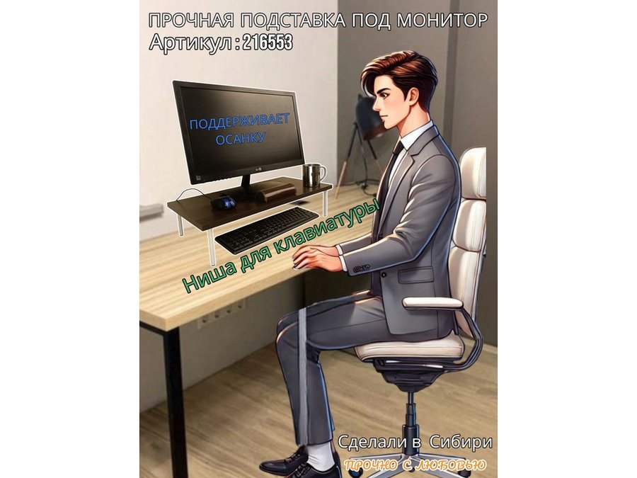 - Универсальная подставка для монитора имеет лаконичный и стильный дизайн, идеально подойдет для любого интерьера.