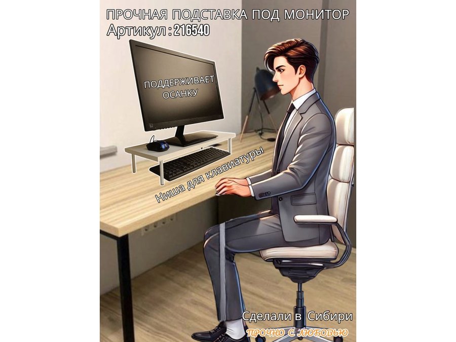 • Универсальная подставка для монитора имеет лаконичный и стильный дизайн, идеально подойдет для любого интерьера.