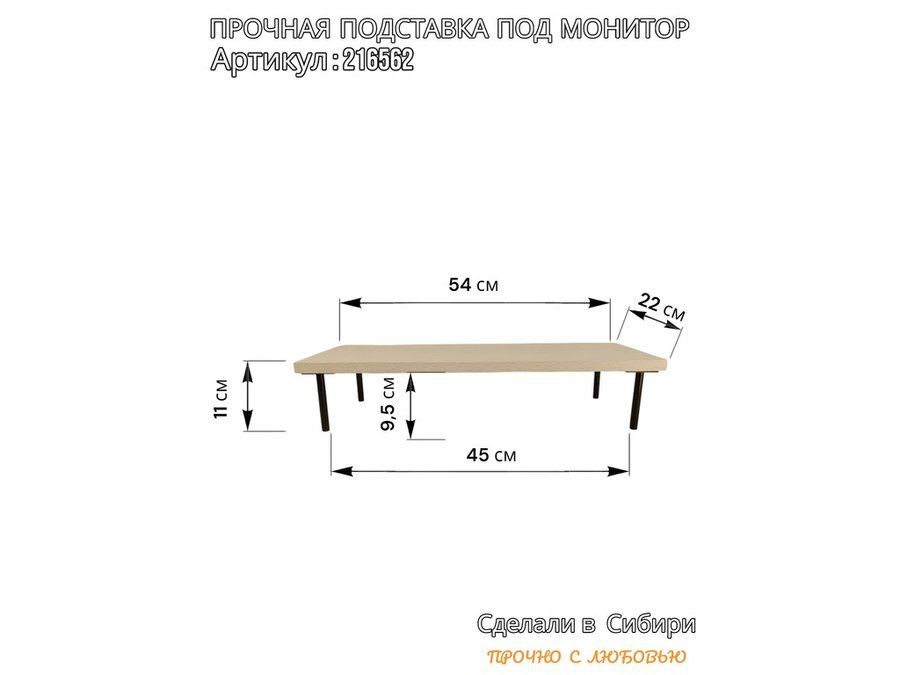 В корзину Купить в 1 клик Подставка под монитор на стол 54х22см высота 11см, сосна выбеленная "ABBIKUS-216562" черные ножки