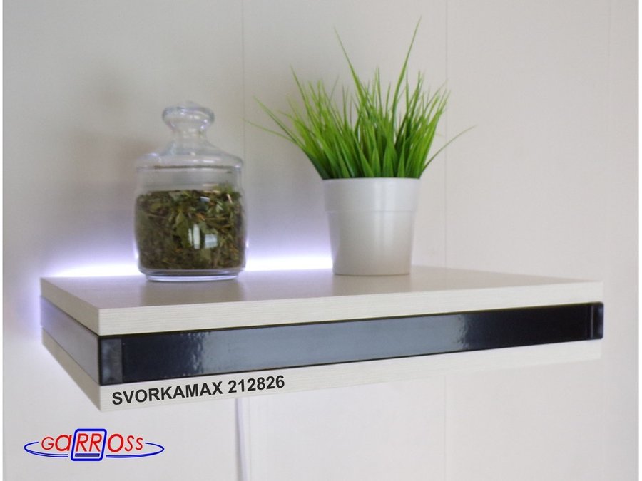 Парящая полка скрытого крепления с подсветкой и тайником, черный "SVORKAMAX 212826" 30х40 см, сосна