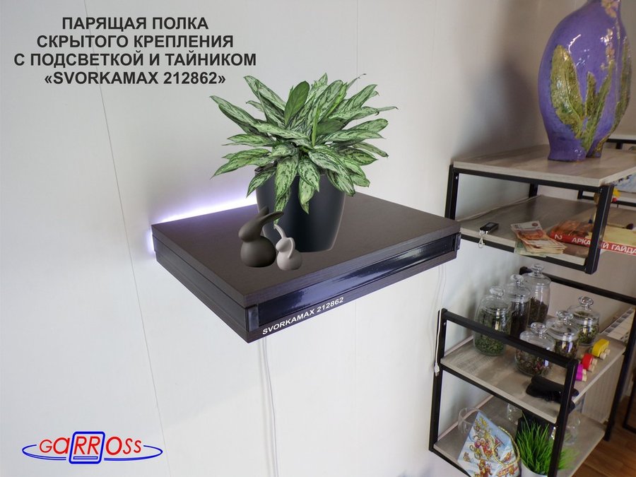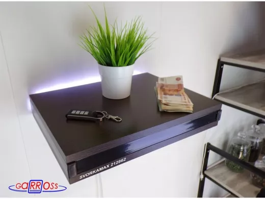 В корзину Купить в 1 клик Парящая полка скрытого крепления с подсветкой и тайником, черный "SVORKAMAX 212862" 30х40 см, венге