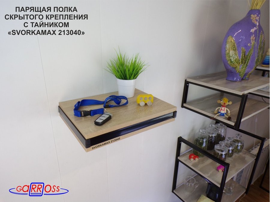Парящая полка скрытого крепления с тайником, черный "SVORKAMAX 213040" 30х40 см, дуб сонома