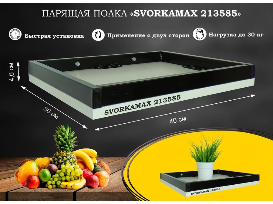 В корзину Купить в 1 клик Парящая полка скрытого крепления, бортики из металла , черный "SVORKAMAX 213585" 30х40 см, сосна