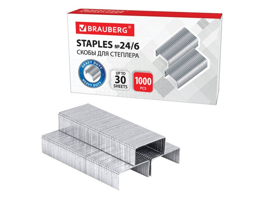 В корзину Купить в 1 клик Скобы для степлера №24/6, 1000 штук, "BR-71420", до 30 листов