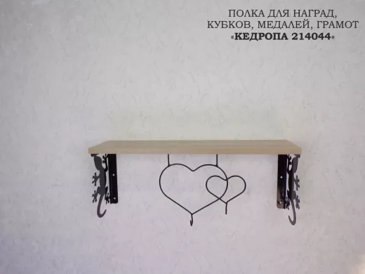 Полка для наград, кубков, медалей, грамот "КЕДРОПА-214044 гекон" размер 15х60х24 см, дуб с сердцем