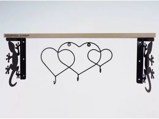 Полка для наград, кубков, медалей, грамот "КЕДРОПА-214047 гекон"размер 15х60х24 см, дуб с сердцами