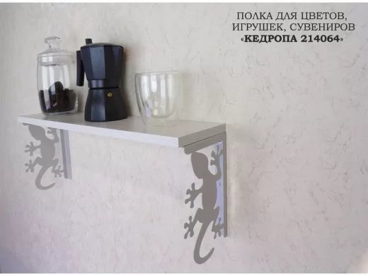 В корзину Купить в 1 клик Полка для цветов, игрушек,сувениров "КЕДРОПА-214064 гекон" размер 15х60х24 см, серый, сосна