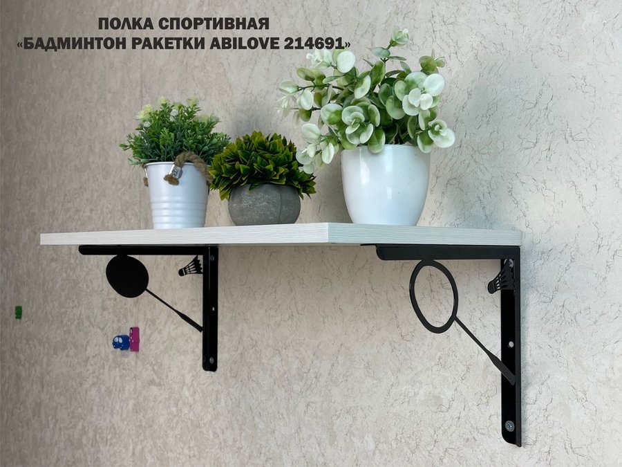 Полка спортивная "БАДМИНТОН РАКЕТКИ ABILOVE-214691" для кубков, сосна выбеленная, размер 30х60см