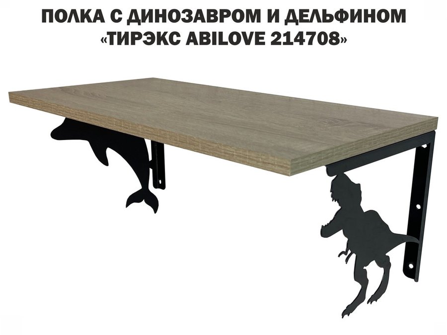 Полка с динозавром и дельфином "ТИРЭКС ABILOVE-214708" для игрушек, дуб сонома, 30х60см